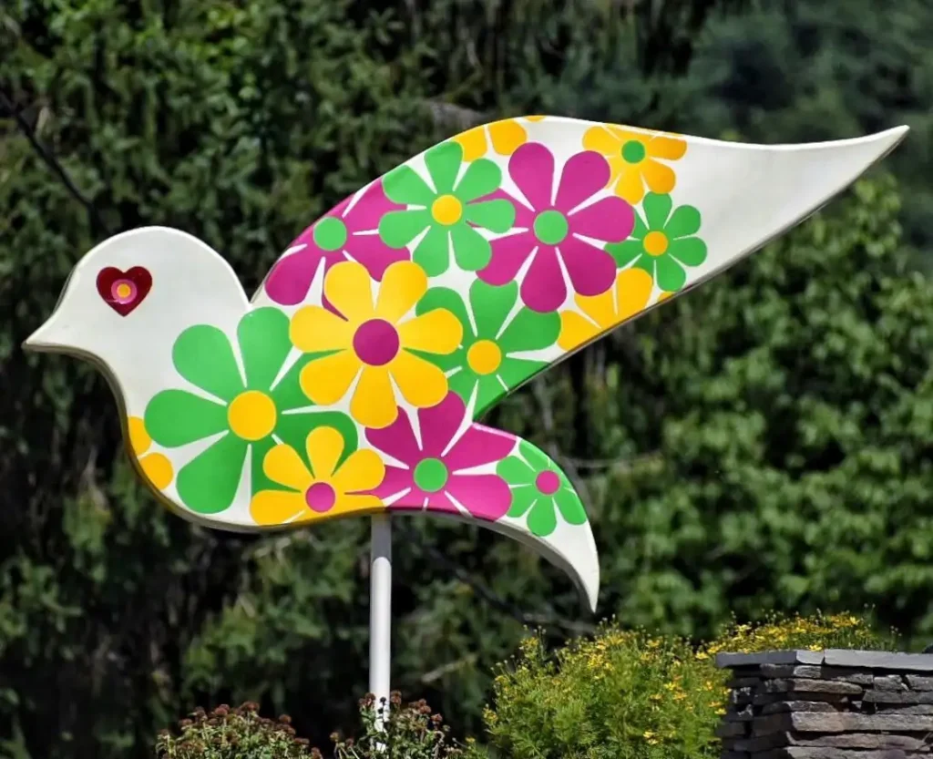 When the first 36 doves appeared, their bright feathers turned heads across the county. Today, nearly 80 five-foot-tall sculptures, each uniquely hand-painted by local artists, perch in towns and hamlets from Callicoon to Wurtsboro. Each piece is a love letter to the legacy of Woodstock—part mural, part monument, and entirely Catskills.