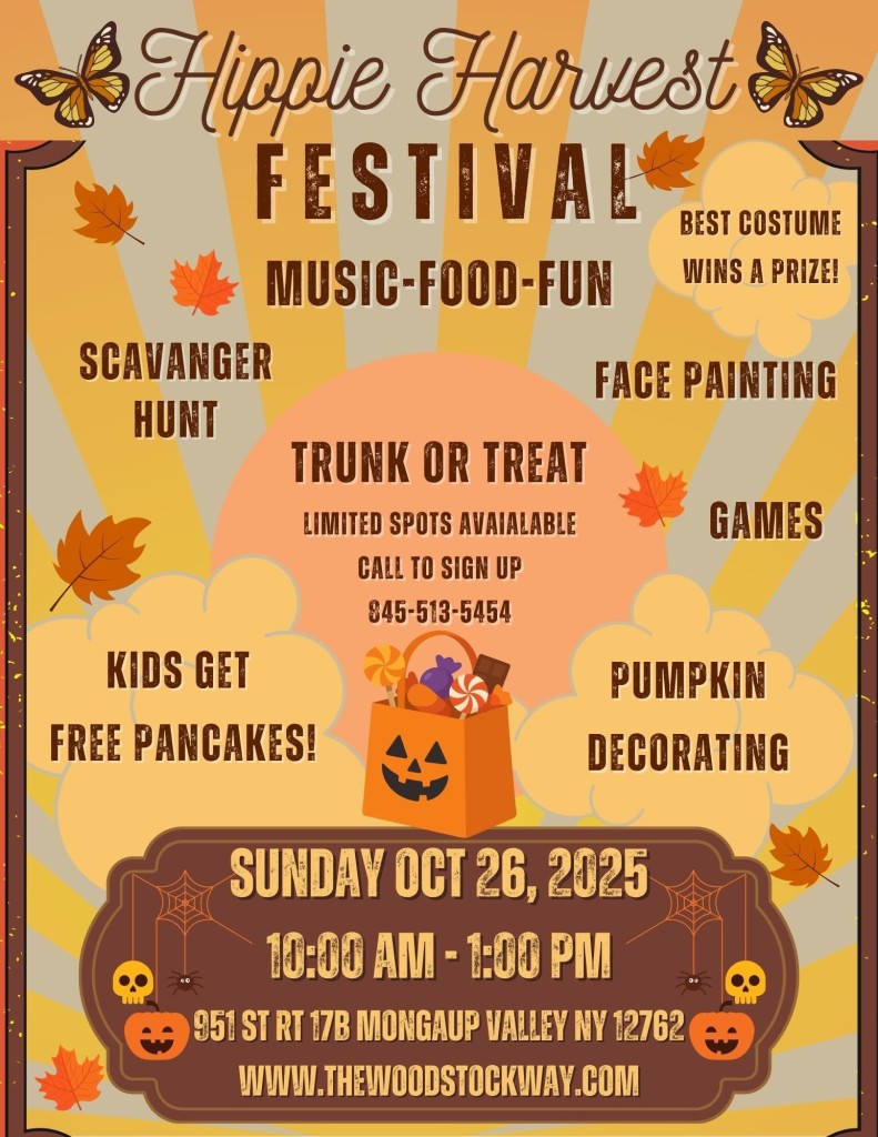 Add to Calendar 10/26/25 10:00am 10/26/25 01:00PM America/Los_Angeles Hippie Harvest Festival Woodstock Way Vacation & Concert Rental