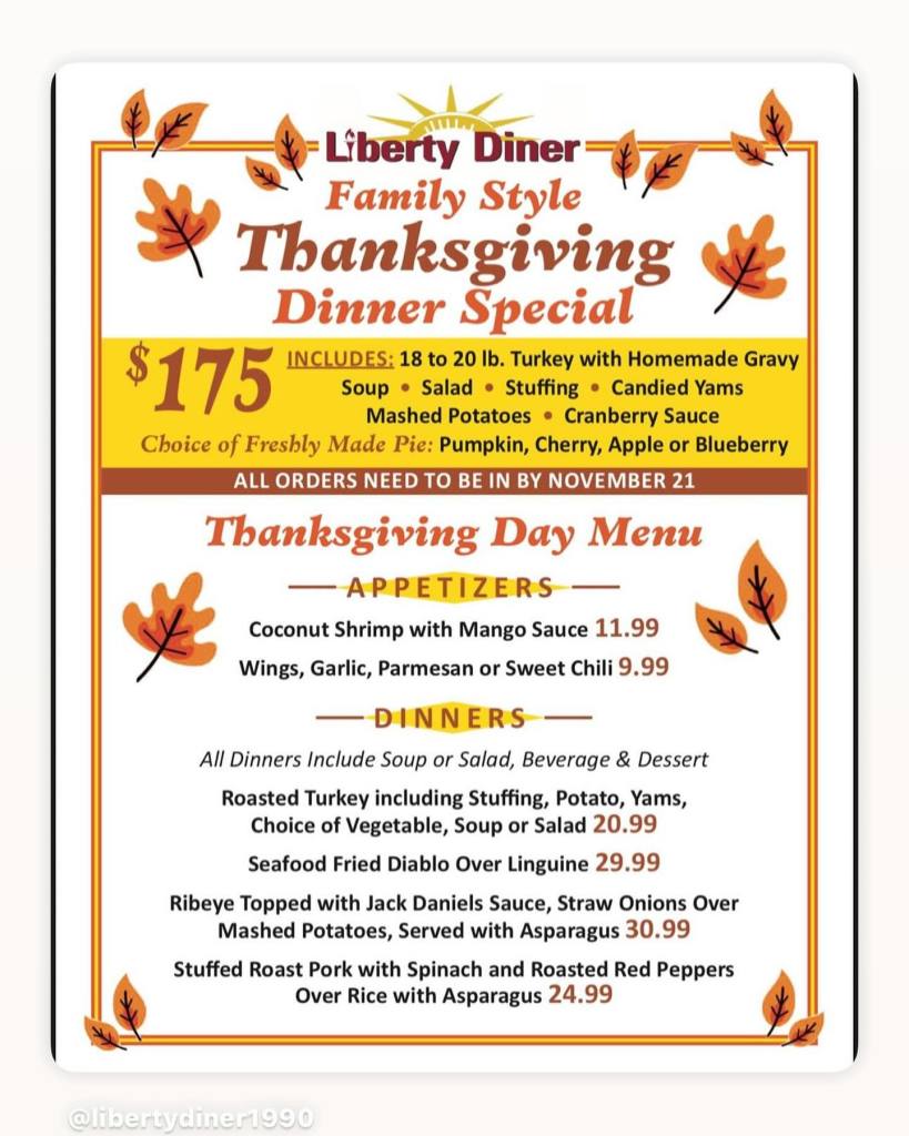 Add to Calendar 11/21/25 11/21/25 America/Los_Angeles Liberty Diner Thanksgiving Dinner Special Liberty Diner
