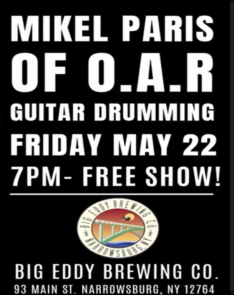 Don’t miss an energetic live performance by Mikel Paris of O.A.R. at Big Eddy Brewing Co. This free show pairs great music with craft brews, creating a lively night out for fans and newcomers alike.