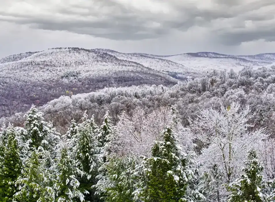 Winter arrives gently, covering the Sullivan Catskills in quiet beauty. Snow settles on pines and porches, turning every bend of road into a postcard. The season carries stillness, but never emptiness as it hums with comfort, warmth and a slower kind of adventure.