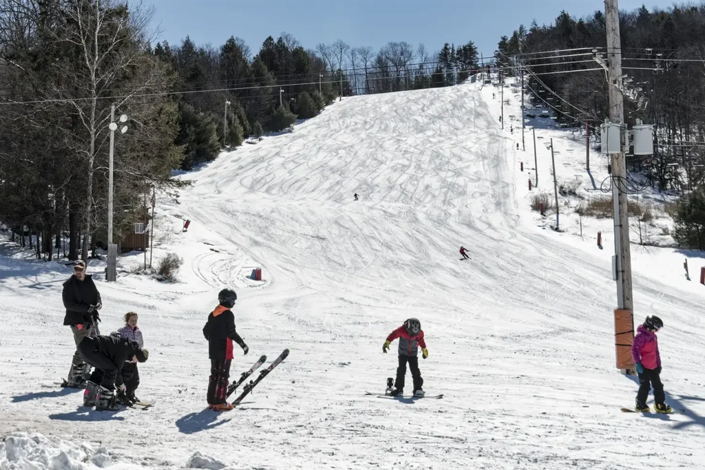 Outdoor lovers find fresh air and challenge on snowshoe trails or ski runs at Holiday Mountain. Ice skaters carve circles at local rinks, while cross-country skiers glide through frosted woods near Livingston Manor. The Delaware River glints beneath ice, its current a reminder of endurance and renewal.