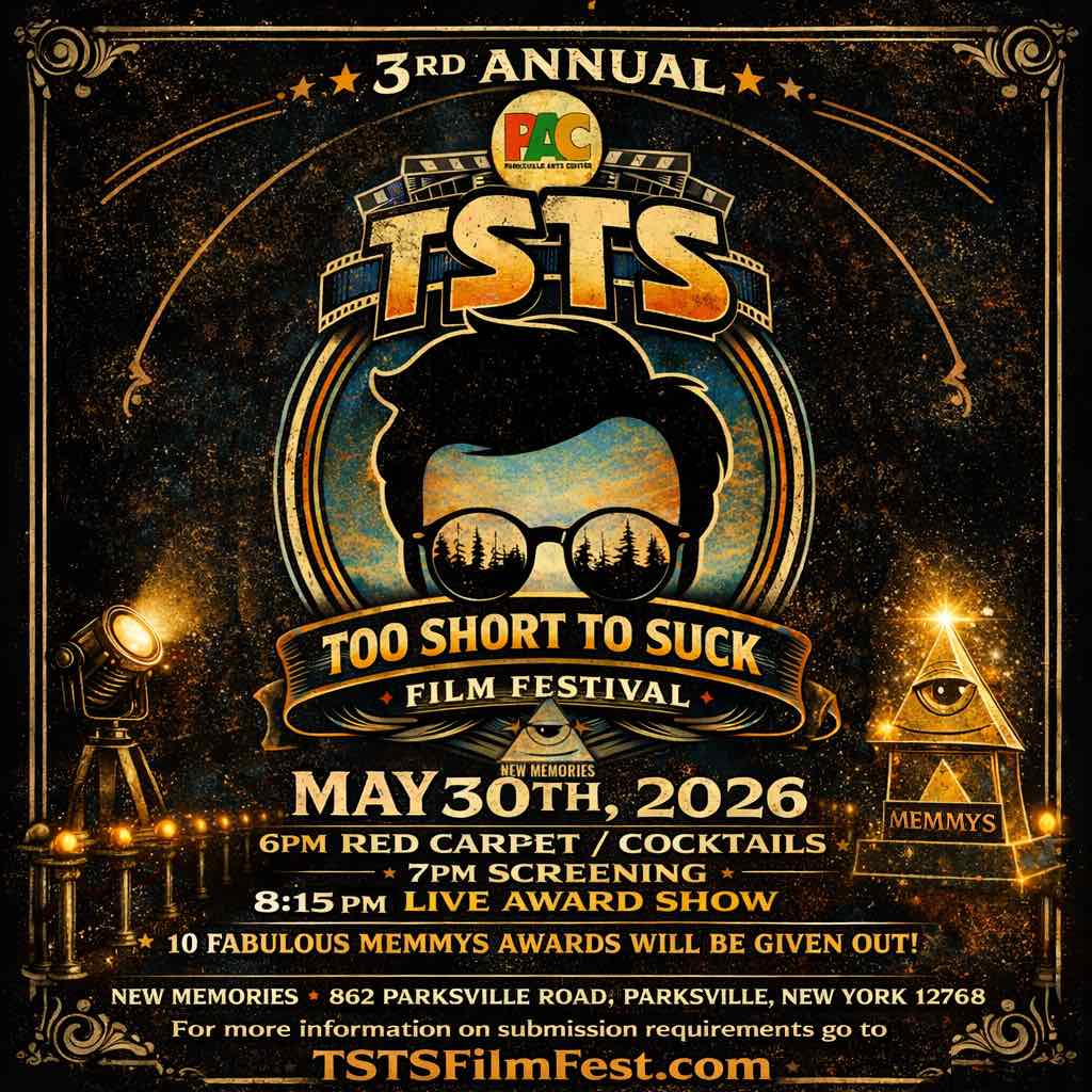 Join us for the 3rd Annual Too Short to Suck (TSTS) Film Festival, presented by the Parksville Arts Center (PAC)! Schedule: 6:00 PM - Red Carpet / Cocktails (New Memories) 7:00 PM - Screening 8:15 PM - Live Award Show 10 Fabulous Memmys Awards will be given out! For more information on submission requirements, visit […]