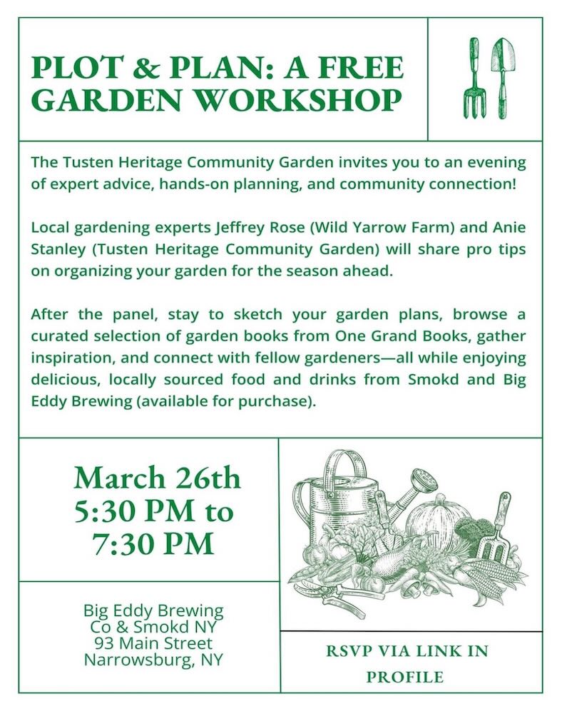 Get ready for the growing season at Plot & Plan: A Free Garden Workshop on March 26 from 5:30–7:30 PM at Big Eddy Brewing in Narrowsburg. Hosted by the Tusten […]