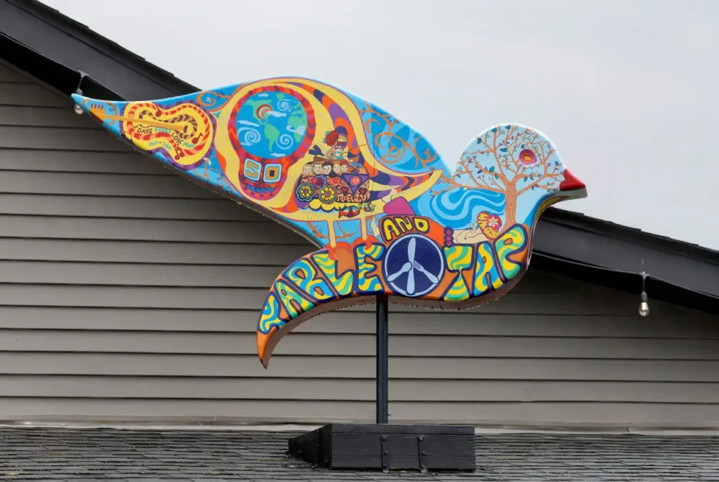 The music didn’t stop at Woodstock. It just spread, into barn studios, roadside galleries, and across the painted doves perched on buildings throughout Bethel and beyond. These hand-painted sculptures honor the original festival, but more than that, they map an ongoing creative pulse. From turquoise typewriters in Callicoon shops to oil pastels smudged in schoolhouse studios, Sullivan’s art scene isn’t curated, it’s lived in.