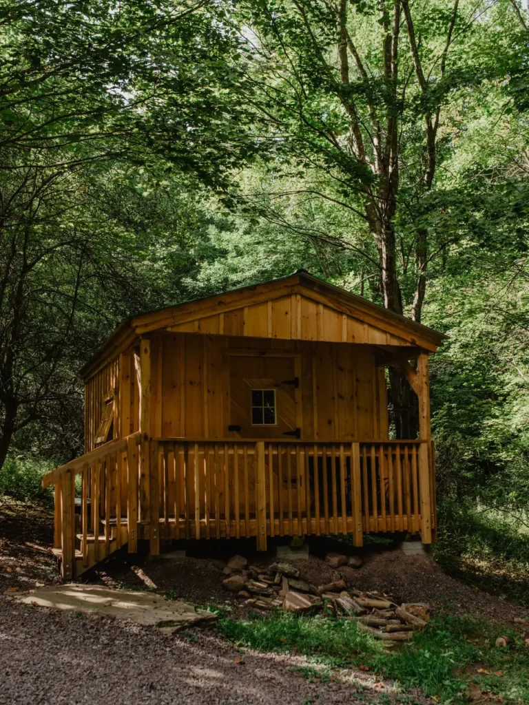 Bethel Pastures Farm gives you 52 acres of hobby farm charm—complete with free-roaming sheep and chickens. Cabins here are simple, sturdy, and soul-filling. Outdoor kitchens and wide skies make dinner a nightly ritual. There’s even a family cabin to fit the whole gang (plus a few muddy boots).