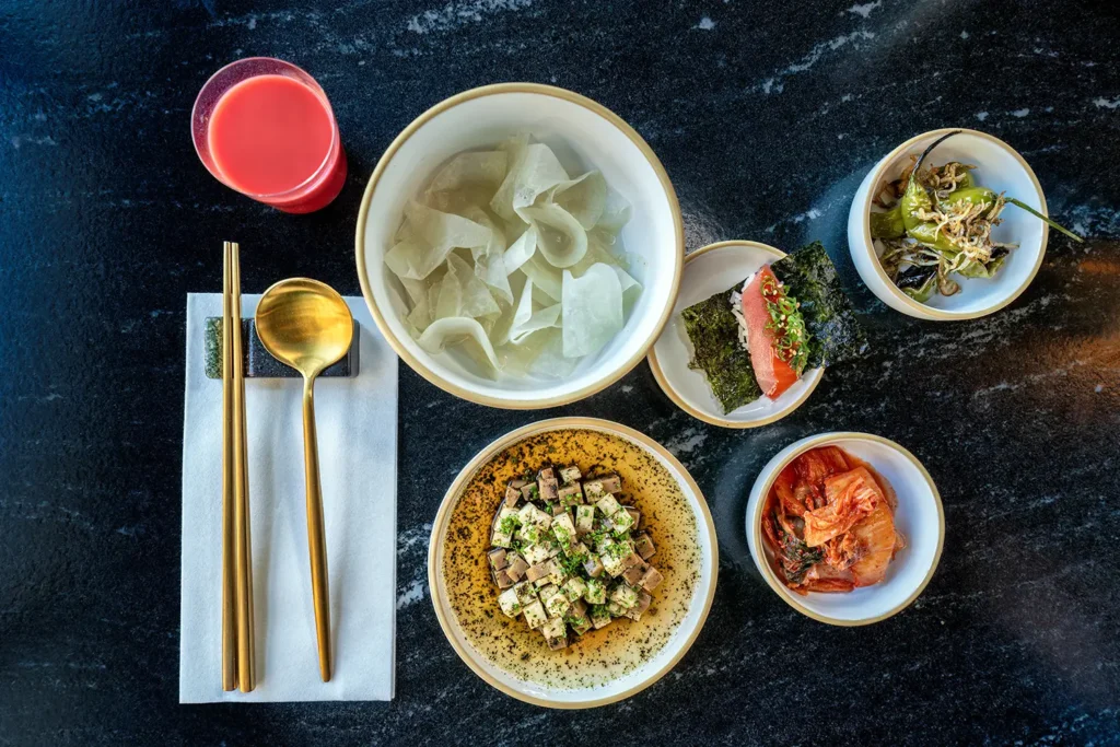 Chef Thom Chun brings Michelin-starred experience and memories of his grandmother’s garden to the kitchen, where he creates dishes that honor both Korean traditions and local ingredients. Alongside him, Cam Shaw draws on three generations of restaurant experience to guide operations and craft the bar program, while Pete Choo, whose earliest food memories were shaped by his Korean mother’s cooking, helps manage the business and welcomes guests.